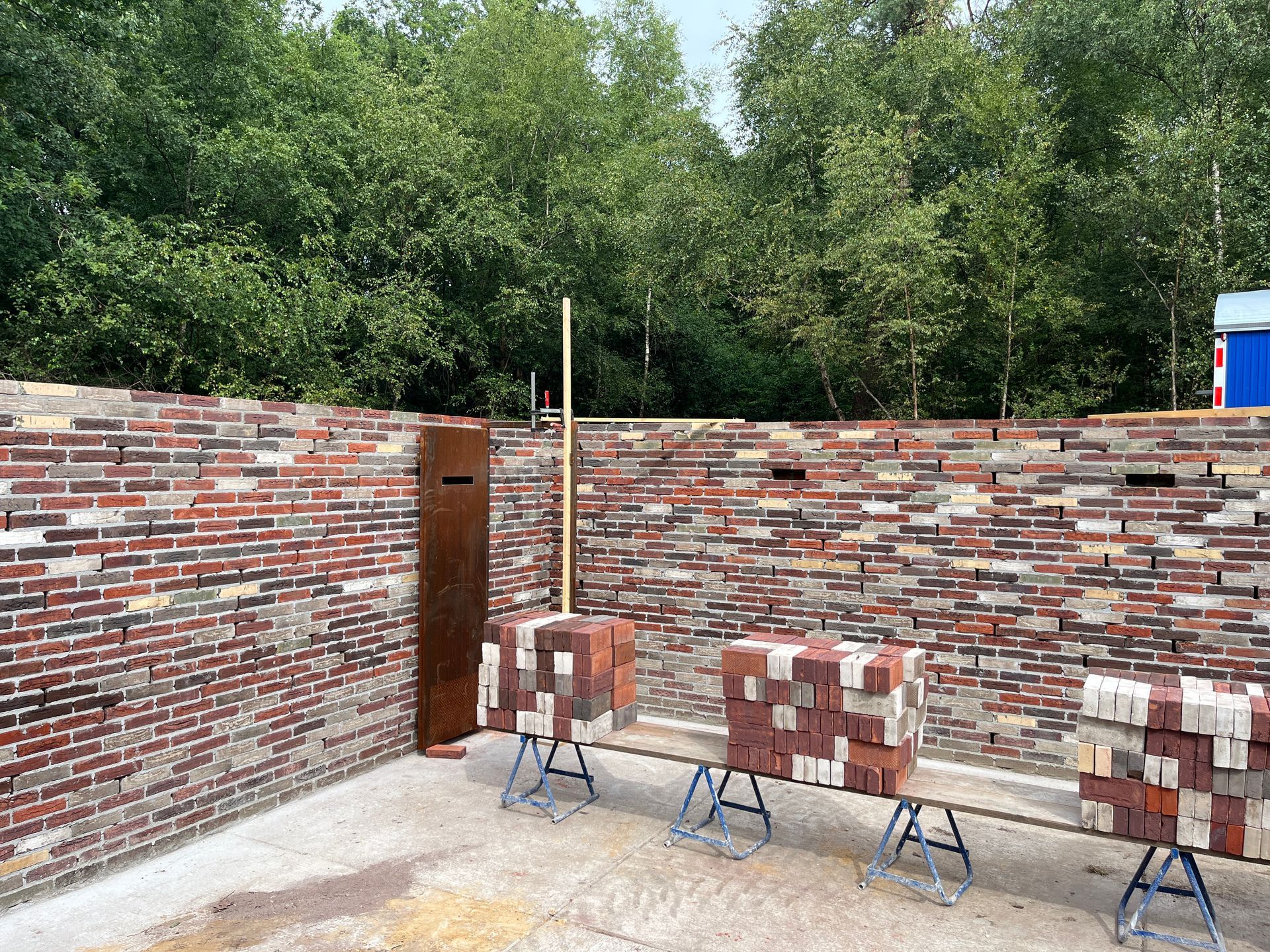 Het metselwerk is uitgevoerd met poreuze handvorm waalformaat gebakken metselstenen in 6 verschillende uitvoeringen in porositeit.