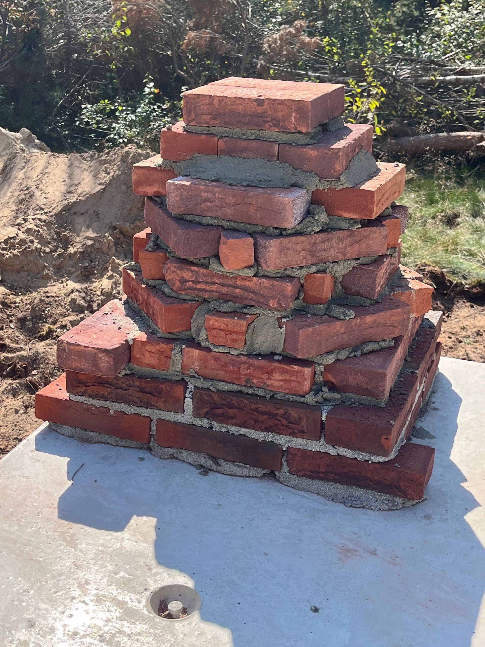 Met het opmetselen van een 'schoorsteen' is er nog meer variatie in wegkruipplekken. Deze toren zit verstopt in het zandbed en krijgt daarmee een andere temperatuur/vochtigheid en dus weer een ander microklimaat. Het zandbed is 1mtr. hoog en zorgt voor een stabiele binnentemperatuur.